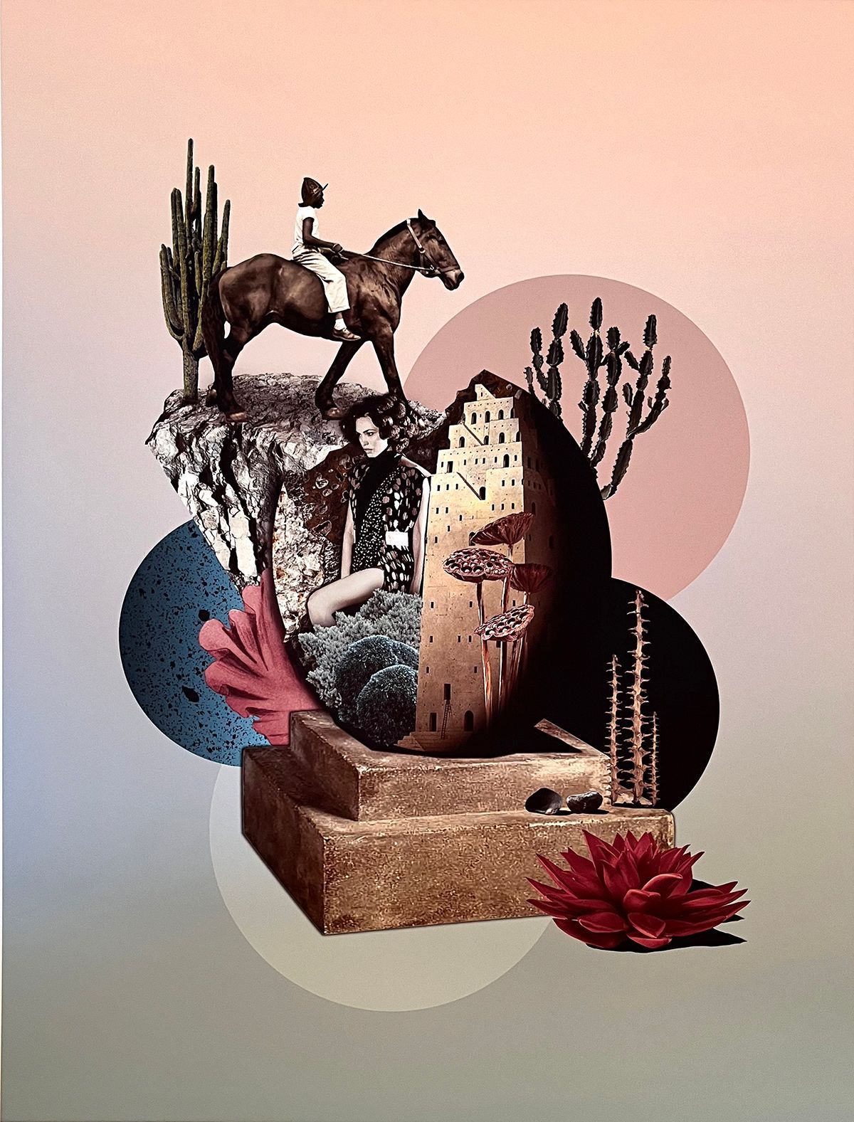 Based in OKC, Tammy Brummell is a multidisciplinary artist and graphic designer. She has focused on magazine and editorial work in her graphic design career. Eventually Tammy developed a unique digital style, creating a significant portfolio of her work. This is how Punching Bag Prints came into being, her creative thought provoking collages have been shown in galleries, shops and online. Fashion, nature and architecture play a big part in Tammy’s work. Piecing these elements together she creates powerful images of Futuristic landscapes and bold portraits.